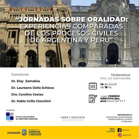 Se realizarán las “Jornadas sobre oralidad: Experiencias comparadas de los procesos civiles de Argentina y Perú”