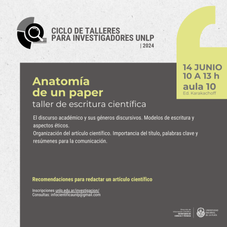 Está abierta la inscripción al taller 2 del «Ciclo de talleres para investigadores UNLP 2024»