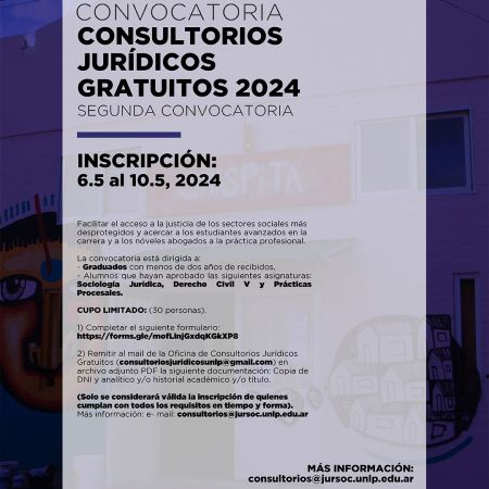 Abrió la 2da Convocatoria a los Consultorios Jurídicos Gratuitos 2024 de la UNLP