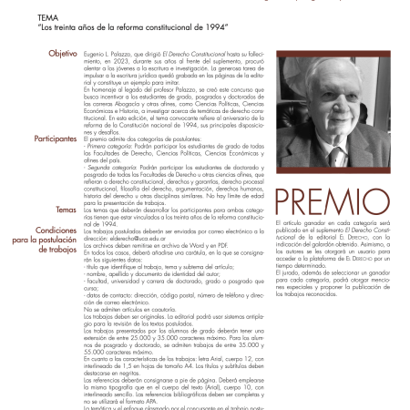 Abrió la convocatoria al Concurso “Eugenio L. Palazzo” para estudiantes de grado, posgrado y doctorado de Ciencias Jurídicas